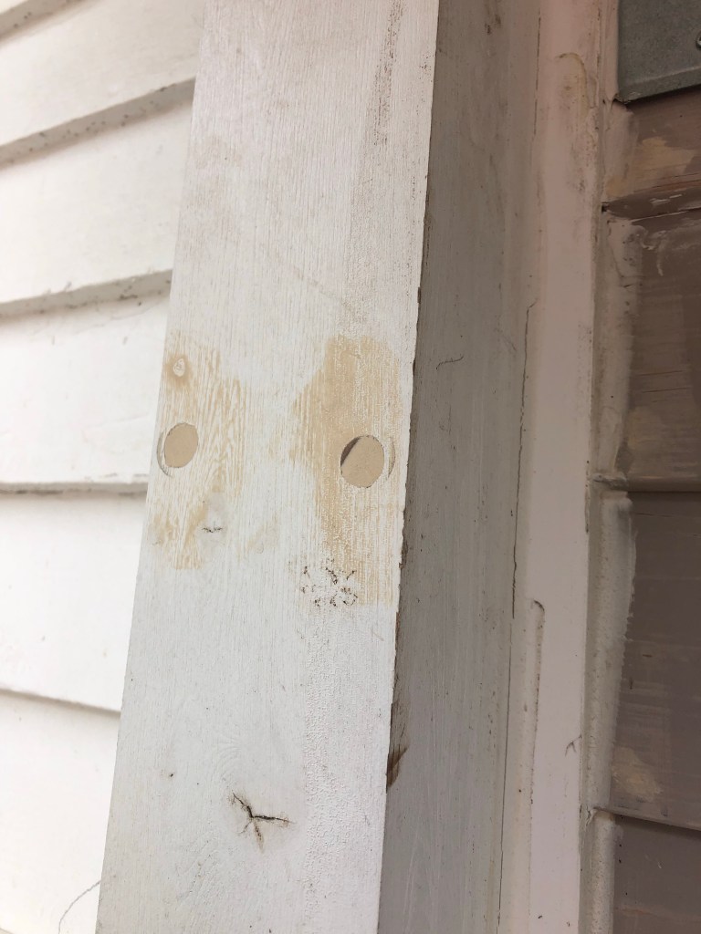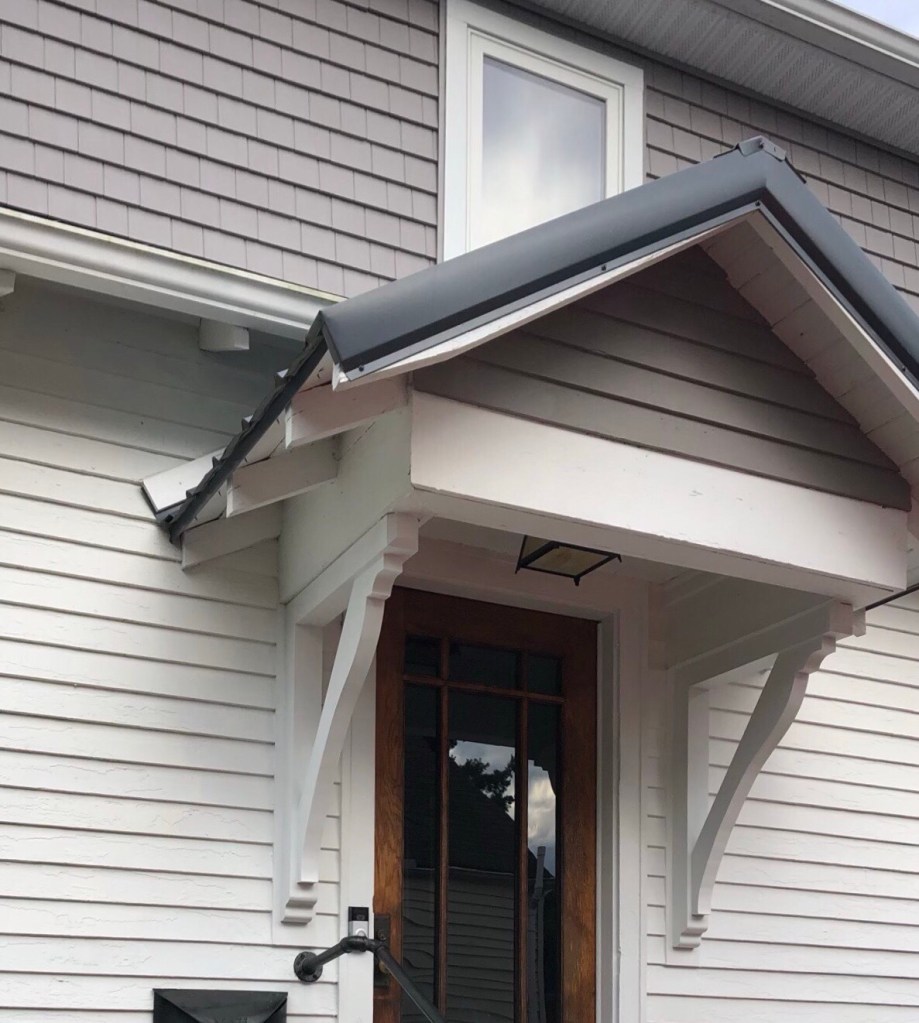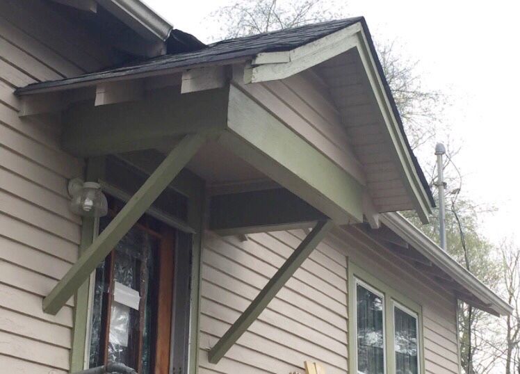 Peep those sad (essentially 2 x 4) supports for the side porch roof. We knew this would end up being the main entrance to our home, and it needed a definite upgrade. I’m a creeper who studies homes in my neighborhood, and saw a home with porch supports (aka corbels) that I thought were stunning! Enter my woodworker dad once again (you’ll see him pop up several times over the course of our reno, and I couldn’t be more grateful). I gave him the design and he made it happen. I waffled over staining them or painting them, but decided to go with white paint to match the rest of the house. The door is natural wood and I didn’t want them to compete with that. (And yes, I know the door currently looks like trash. It’s on the LOOOOONG to-do list).