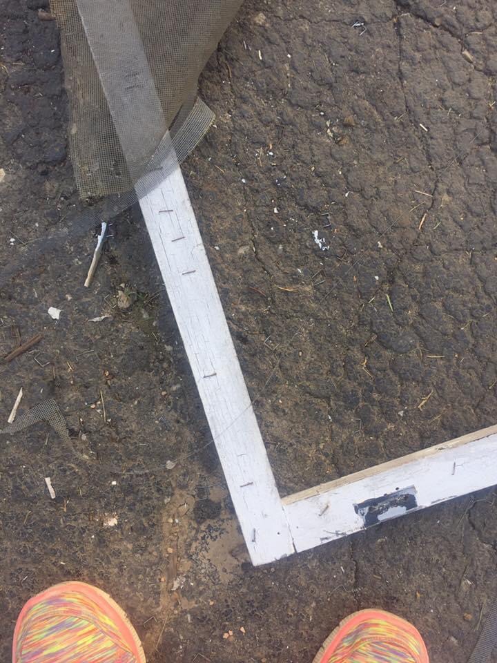 These screens are the reason my days as a hand model are over. Someone put 5 bagillion staples on each frame when they lazily replaced screens over the years. (Have I mentioned my house is 98 years old??) I did a lot of cursing as I pulled the old staples out of these babies.