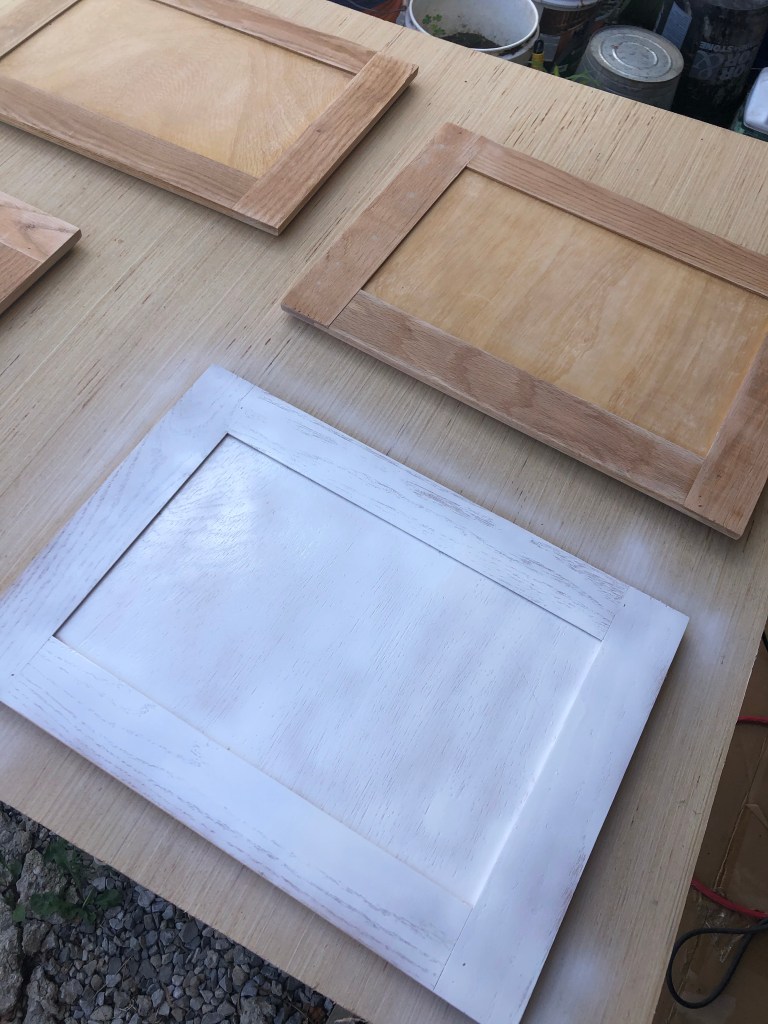 I started by getting the cabinets set in place. I had already primed and painted them.