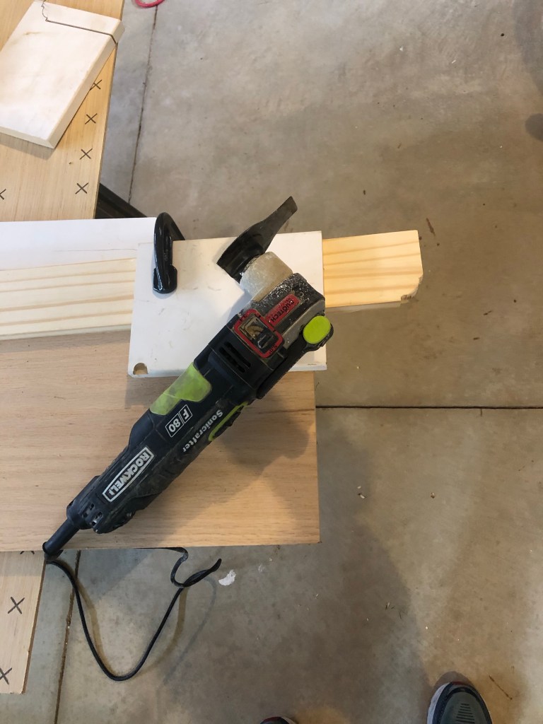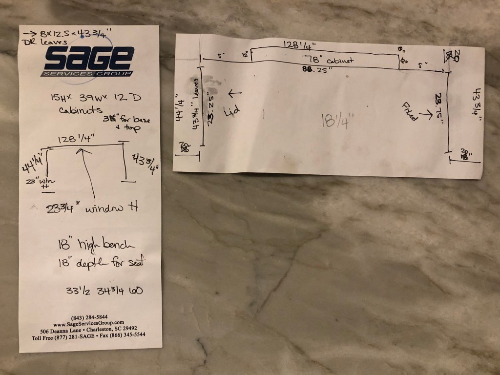 I got lucky that the table leaves and their holder would just fit on one side of the bench. I decided that they would go on the left side, and I would have a hinged lid for access (this ended up being the BIGGEST PIA of the whole project, so if you don’t want a hinged lid you’re golden).