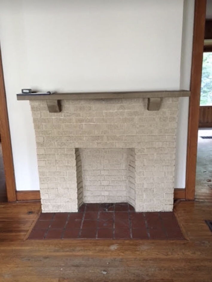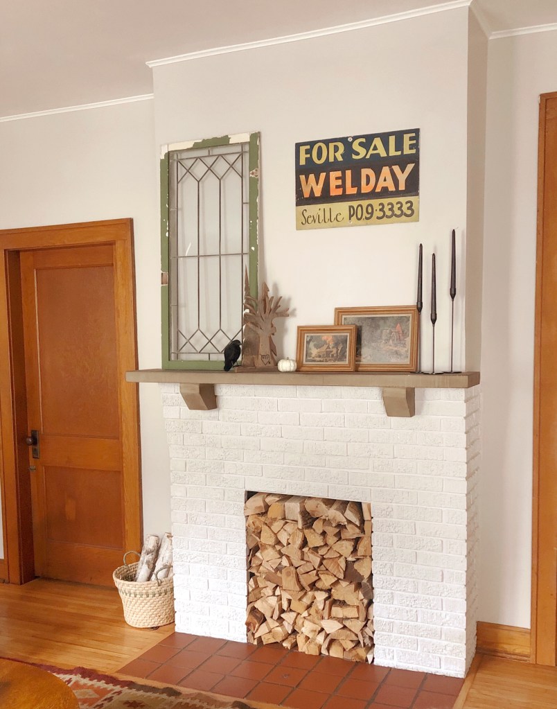 The fireplace also got a coat of white paint to freshen it up. It’s a shallow box so I couldn’t stack full logs inside of it. Instead I cut down logs to fit and fill the opening. I’m tempted to remove the lathe and plaster from above the mantel to expose the brick, but I realize how messy of a job that would be. If I was going to do it, I should have pulled the trigger during construction when everything was a mess anyway!