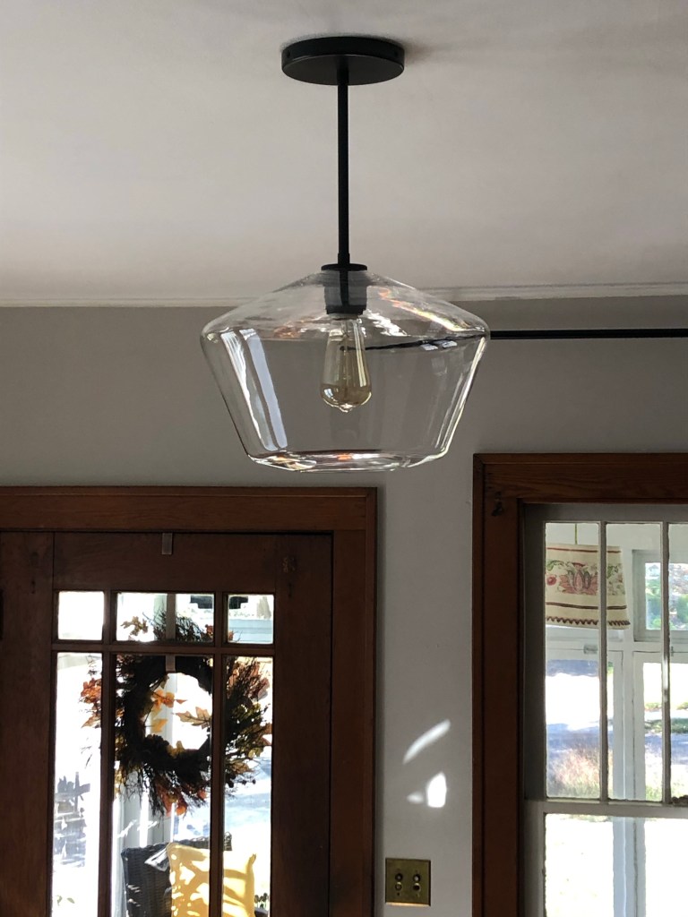 The room had two really odd pendant light fixtures — like something you would see over a 2002 kitchen island. I really wish I knew what was there originally! I went with two 10″ Geo Pendants from West Elm. I love the look of a schoolhouse style fixture, but wanted to stick to clear glass (little did I know how hard they would be to keep clean).