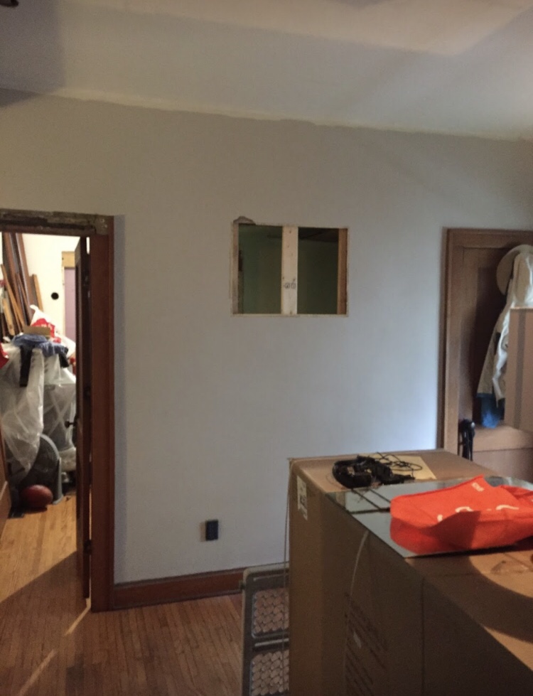 The only truly odd thing about this room was the “groovy” mirrored niche on the wall. I assume it was added in the 60’s? 70’s? It was tempting to add a mini disco ball (yes, there was an outlet in the niche!) and just make this a party room, but I resisted the urge. The wiring to that outlet was janky as hell, and the niche cut into the bedroom closet and took up a lot of space.