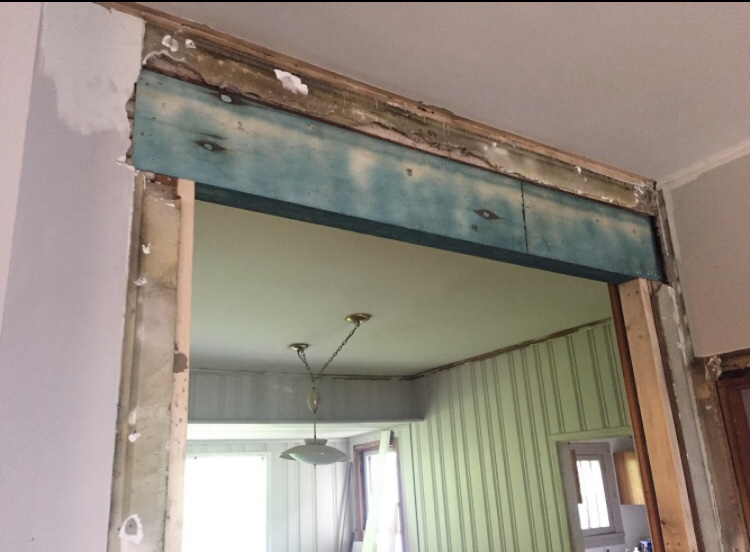 The only other work needed in the room besides paint was repair work due to the addition. They had to remove the trim around the doorway to the dining room and install a new beam to support the work happening in the attic. They did replace the original trim around the doorway, but the crown molding was no longer usable.