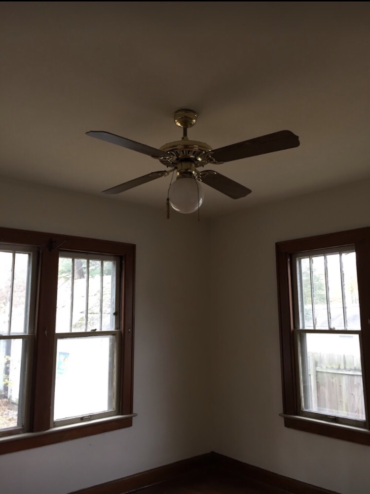 Pros: Original windows and trim. Cons: An ugly, dirty ceiling fan.