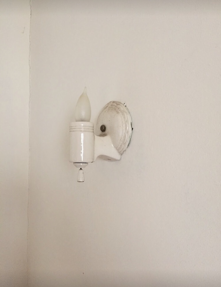 There were two of these sweet little wall sconces. Sadly, one had to go because it was too close to where the closet door needed to be. I insisted we save the other one, much to the dismay of the electrician.