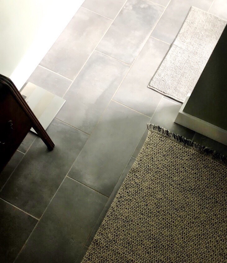 We chose a 12 x 24 porcelain tile in grey for the floors in both the closet and bathroom.