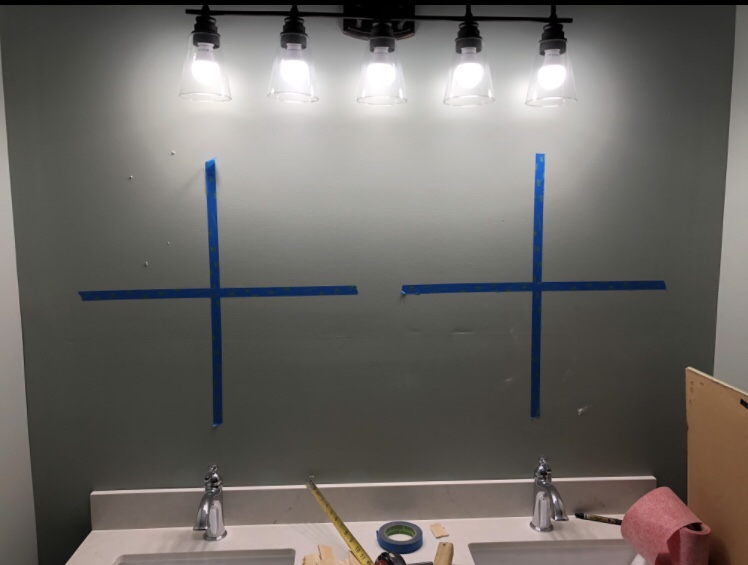 There’s only one small window tucked back in the shower, so it tends to be dark (which is why all my photos of the bathroom are just the worst). So I picked a big, BRIGHT 5-light fixture in oil rubbed bronze.