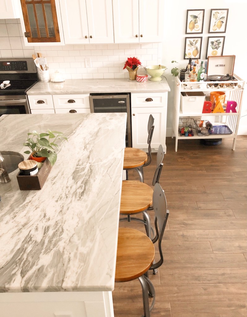 For our countertops we went with quartzite. I love the look of marble, but it’s too high maintenance for us. Quartzite is a natural stone, unlike quartz which is man-made. It’s harder than granite, low-maintenance and easy care. We wandered about half a dozen stone yards until we found the slab we (I, let’s be honest) wanted. It was a bit of a splurge, but totally worth it. Then another company, Distinctive Interiors, took the slab and cut it to our specs and installed it.