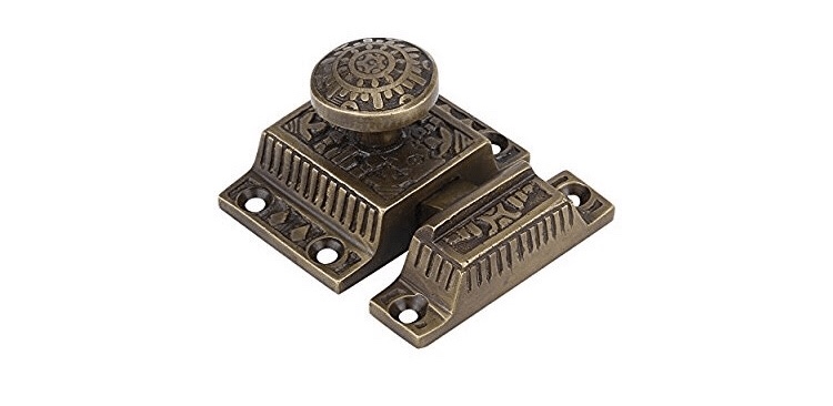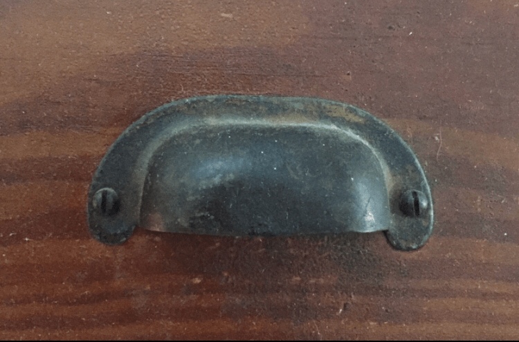 Then it was time to select hardware. For the drawers I wanted to match the cup bin pulls from that original pantry. I found a pretty close match on ebay, and then got door pulls that were a similar look to the finish. For the extra long drawers I didn’t want to use two bin pulls, so I got long bar pulls. I kept the original crystal knobs on those two vintage cabinet doors, but they are placed really high (we are tall people, but not THAT tall). I added a large, detailed cabinet latch at the bottom of those cabinets which also serve as a pull.