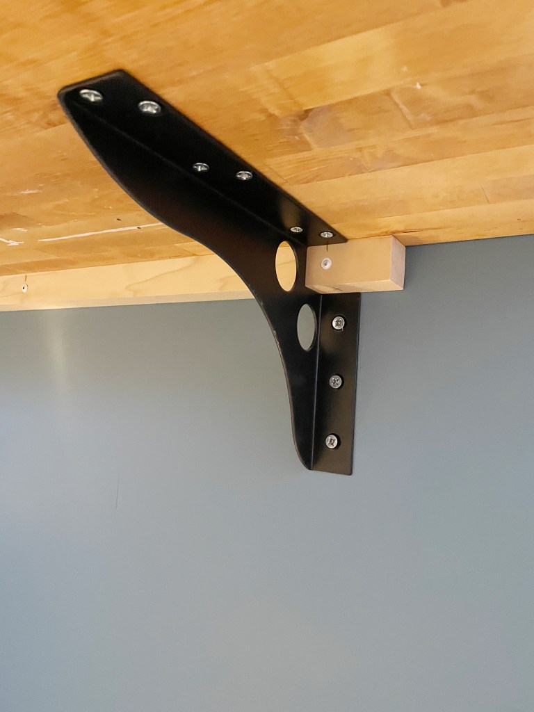 I found these SpeedBraces at Amazon and made sure that two of them would be sturdy enough to hold the counter. I mounted a cleat on the wall and this thing isn’t going anywhere!