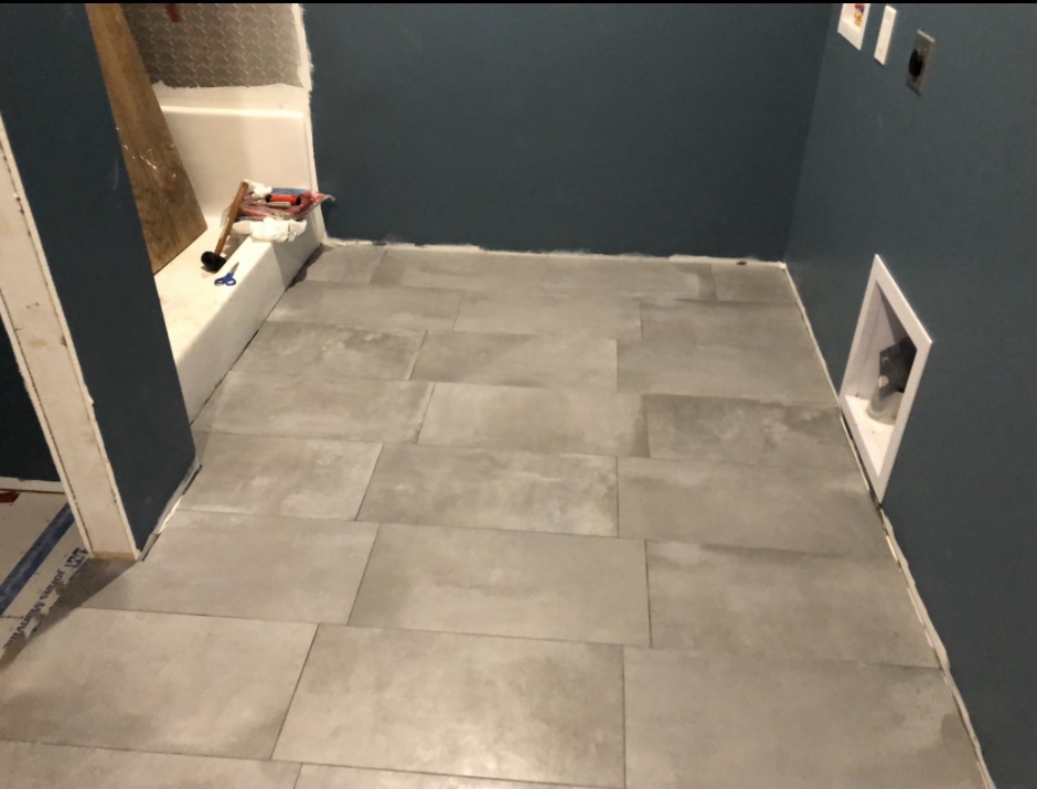 We used the same tile in here that we used in our master bathroom. The grey porcelain tiles are 12 x 24″ and don’t show too much dirt. This is a MUD room after all.