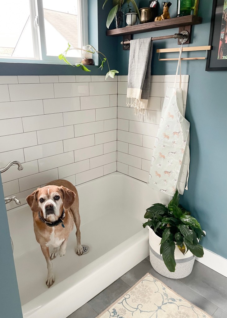 The reason this room works so well for our purposes is that I can bring a new foster dog in through the garage, give it a bath and let it out in the back all without it ever coming into the rest of the house. For everyone’s safety we quarantine them for several days, which also allows our dogs to smell them without seeing them and introductions go much more smoothly.