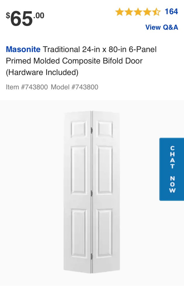 I didn’t want to spend a lot of money on closet doors, so I purchased stock bi-fold doors at Lowe’s. Bi-fold door aren’t my favorite, so I needed to make some adjustments to these so they would work as french doors. My dad came in handy here, and is really the one who figured out how to make it work. I think they look much more expensive than a traditional bifold door.